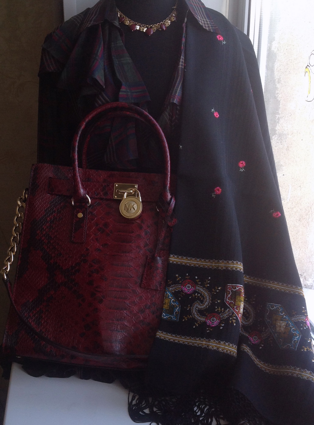 Сегодня получила платье сумку МК и ещё кое-что. Пробую собрать look. Вот что получается. Барышни, критикуйте, слов особенно не подбирайте.