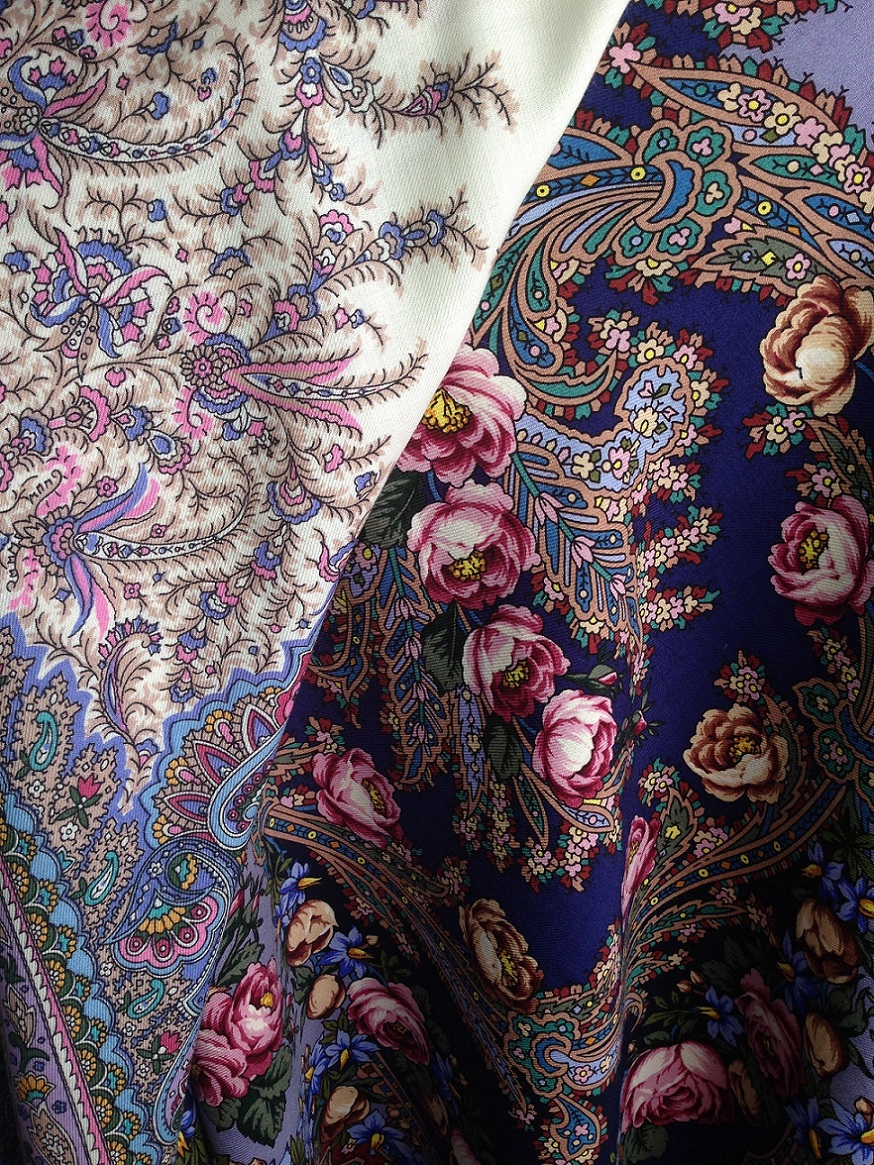 платочки разные, на Звоннице присутствует сиреневая кружевная дымка, а на НСВ зелень цвета хаки и гирлянды мелких цветочков... схожесть мне кажется только в присутствии в обоих рыжеватого цвета.