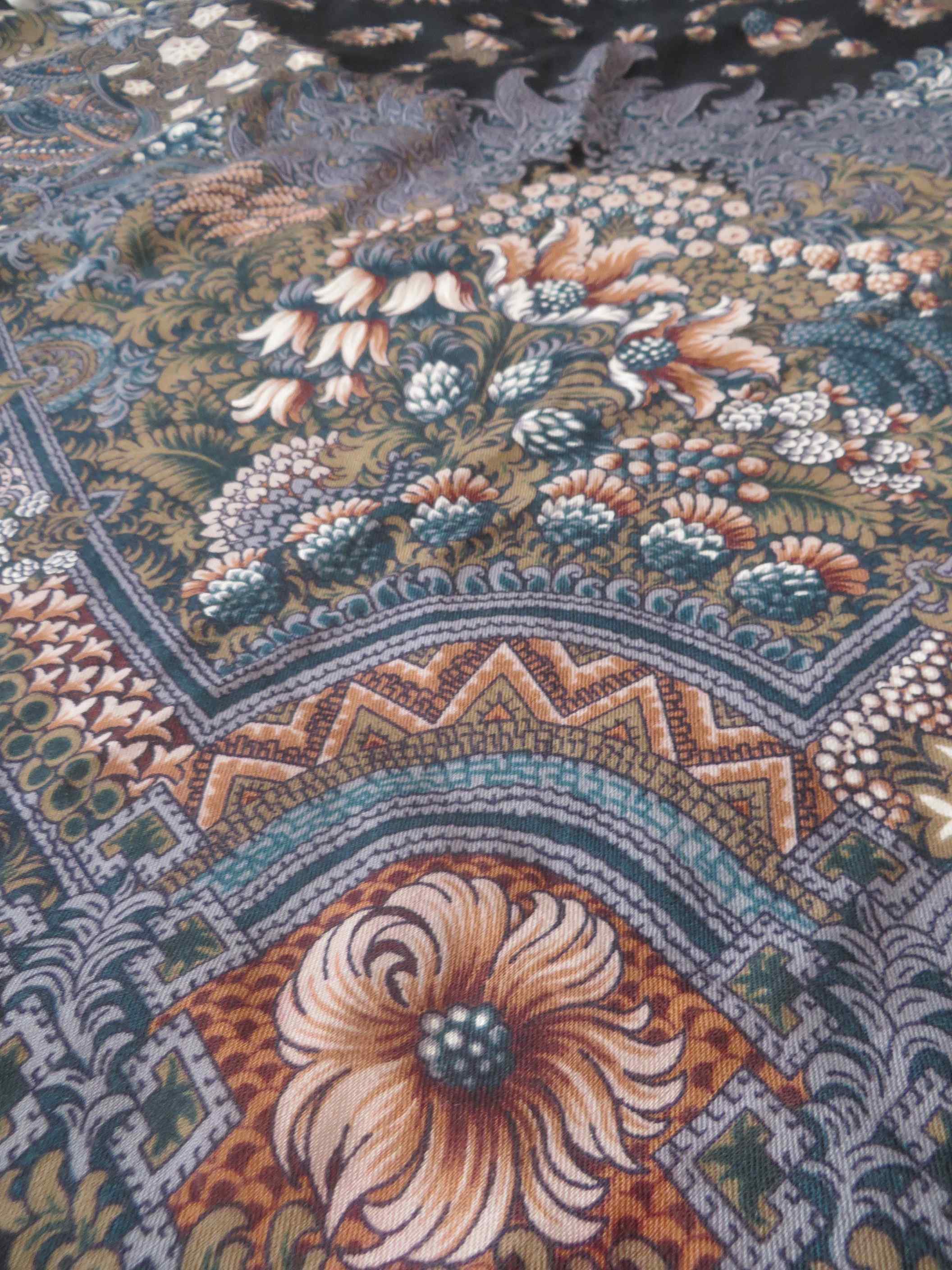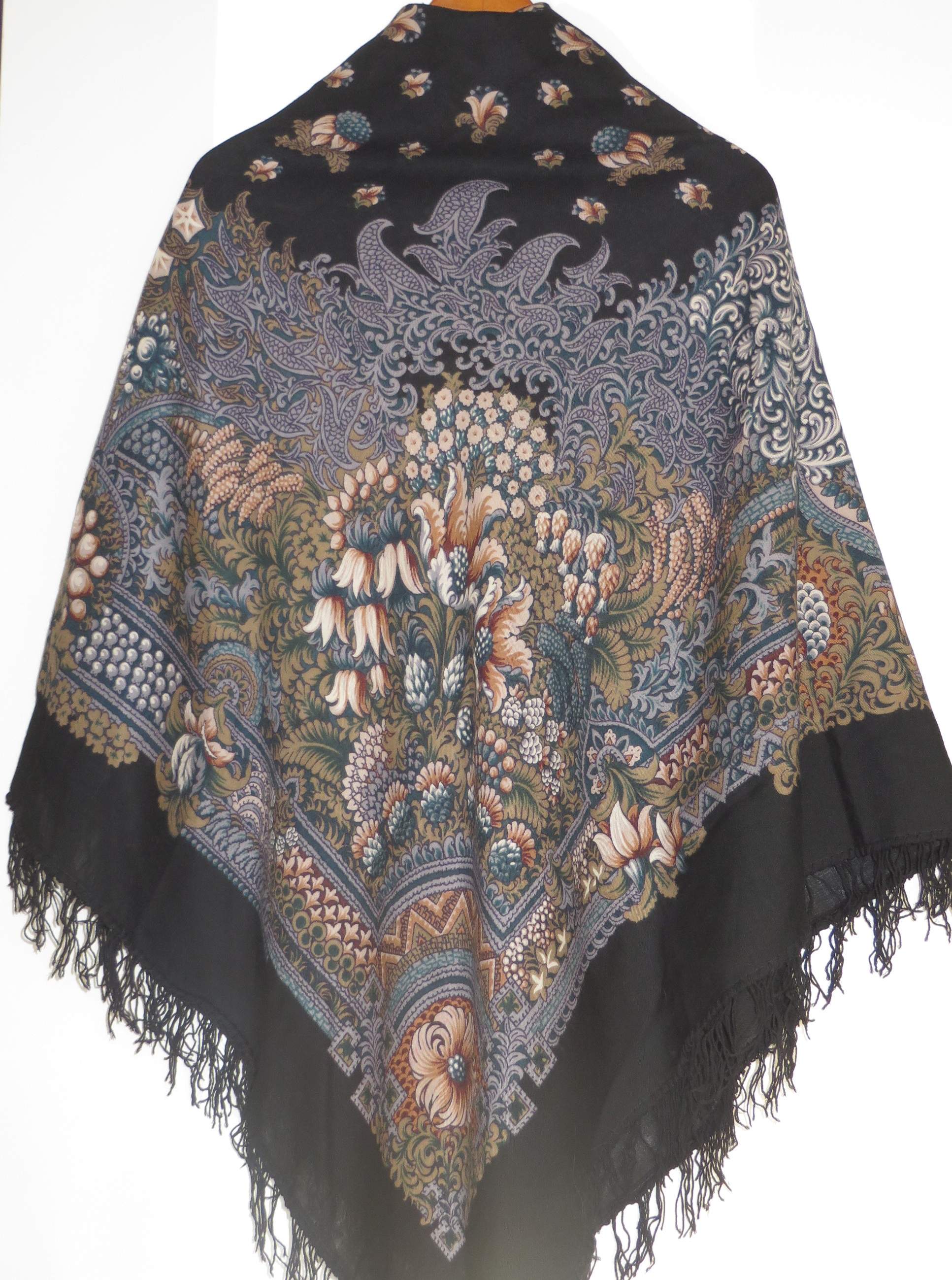 Шаль завораживающая. Я недавно видела женщину в метро, на простую куртку накинута Бархатная ночь этого же колорита. Я так смотрела на неё, что её спутница стала шептать ей в ухо и тянуть в другую часть вагона. Действительно, рисунок просто поражает.