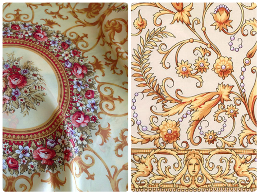 Платок Чистые росы купила очень давно, много носила, даже стирала и решила года через три купить второй про запас. Оба платка покупала на сайте ППМ. У первого платка ткань плотная, крепкая. Каково же было моё удивление, когда я получила второй платок. Он очень тонкий, прозрачный, а насколько бледнее краски и нет той прорисовки деталей. Обратите внимание на лилии и листья. Справа старый платок, слева новый.