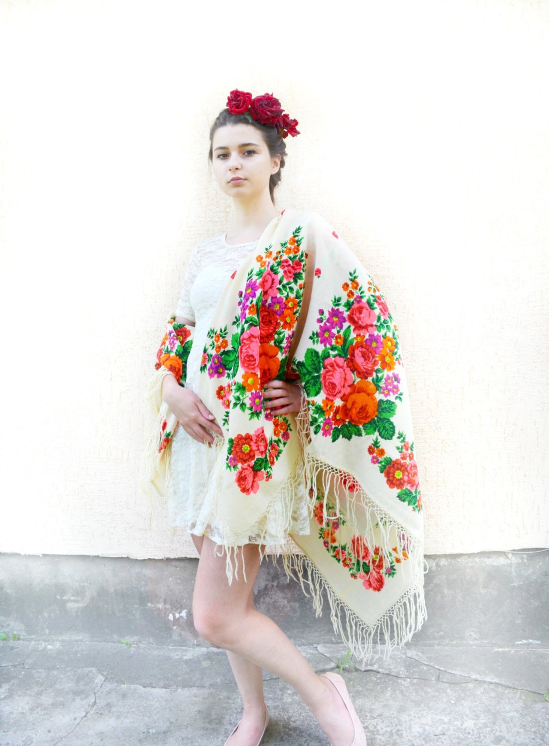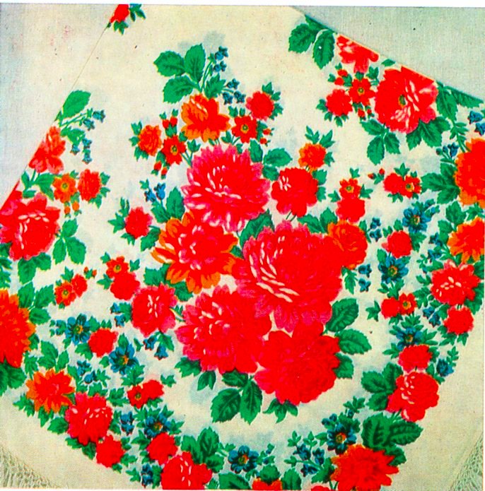 Шаль шерстяная 150х150. Печать МППО, конец 1970-х - начало 80-х годов.