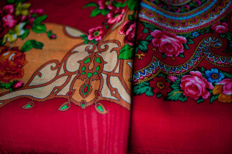 Мне казалось, что красный у этих платков одинаковый, однако в сравнении оказалось, что нет. На фото видно, что в Красках Лета он чуть уходит в желтизну, так и есть.