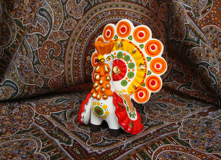 Это Дымковская глиняная игрушка. Идолы и тотемы в прошлом, теперь же радость для глаз и отличное средство для поднятия настроения!