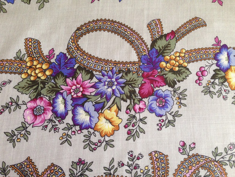 korovka, ^% . Этот платок хорош просто как аксессуар,в его рисунке нет таких сложных композиций, как в работах Сухаревской, но в нём всегда будешь выглядеть нарядной, как мне кажется.