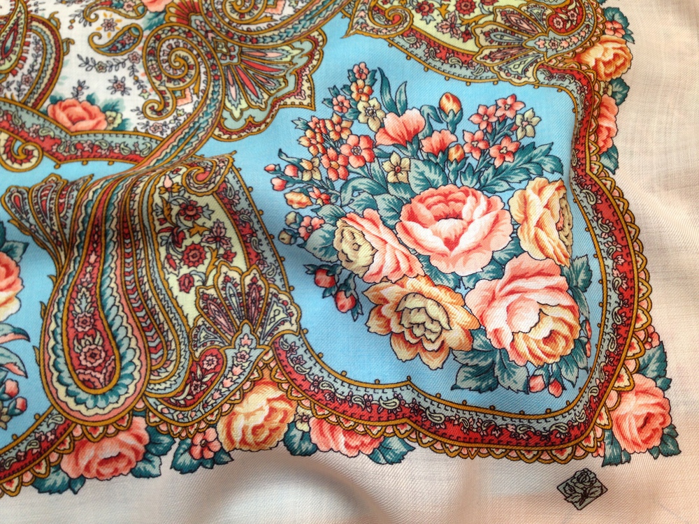 Вчера в порыве страсти к Балаганчику совсем забыла. Купила в подарок очаровательный платочек, пока он у меня - сфотографировала, хорошенький! Может фотографии его окажутся кому-нибудь полезны :) .