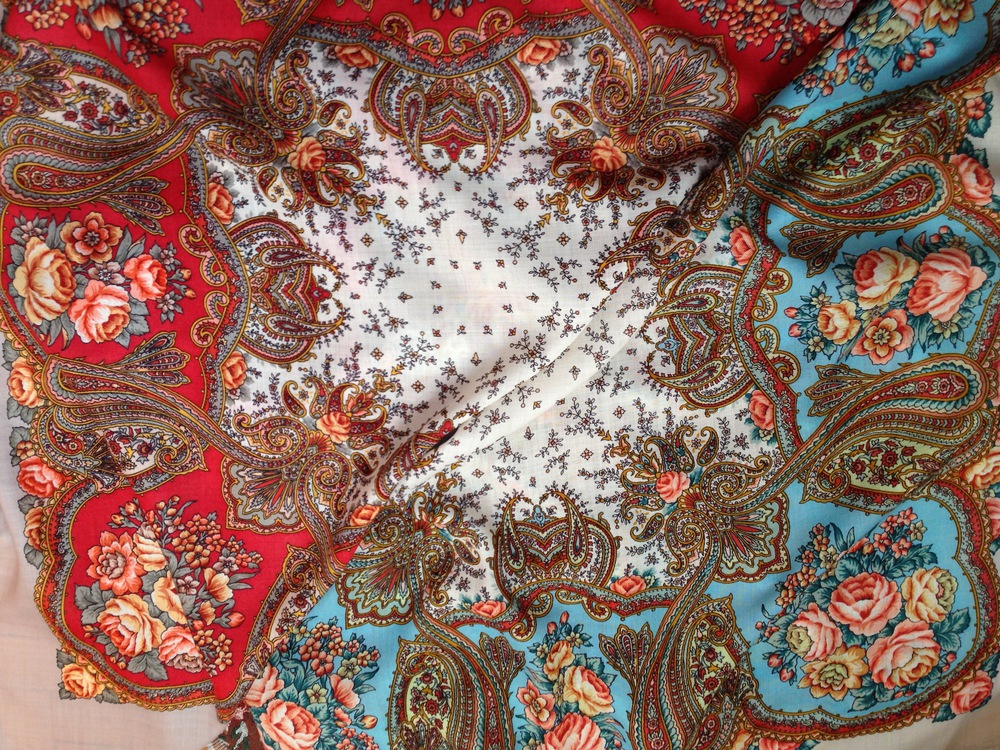 Цвета на платке: изумрудный, бирюзовый, оранжевый, немного фуксиевого,, фиолетовый разных оттенков, лимонный, салатовый, совсем немного черного и т.д.