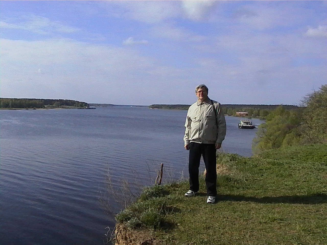 Мы вернулись домой в 17.00, и поехали на Матизе в ту сторону нашей улицы Карла Либкнехта, куда еще не ходили, и оказались в сосновом бору. Ехали-ехали по лесной дороге, а конце – поляна пикников на берегу Волги. Но сейчас-то ни души, маленько солнышко выглянуло, катер под тем берегом плывет – красота, хотя по сравнению с утром похолодало. Здесь таинственно и медленно, так, что не видно течения, из леса вытекает речка Каменка и впадает в Волгу.