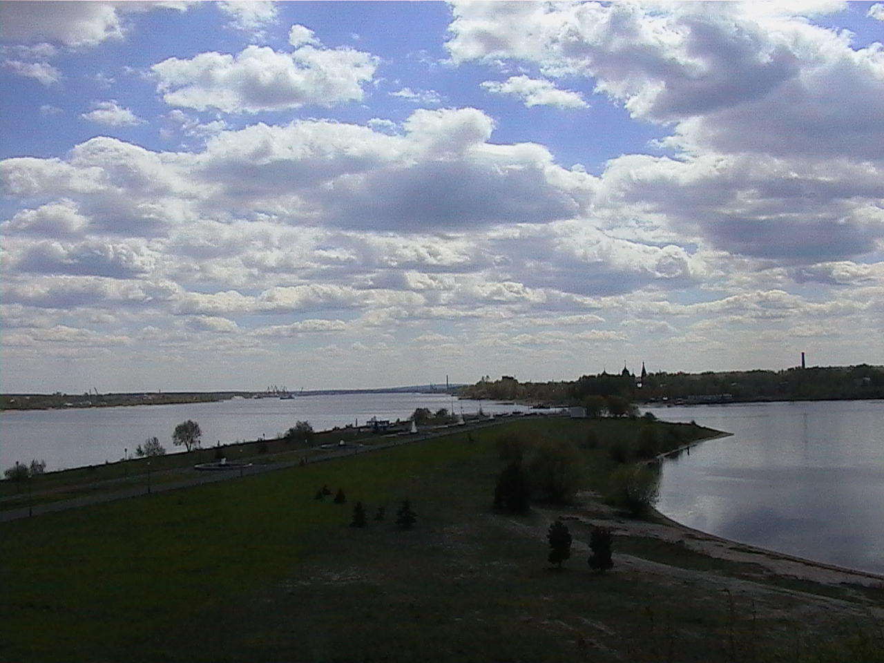 Впадение реки Которосль в Волгу (Волга слева, Которосль справа)