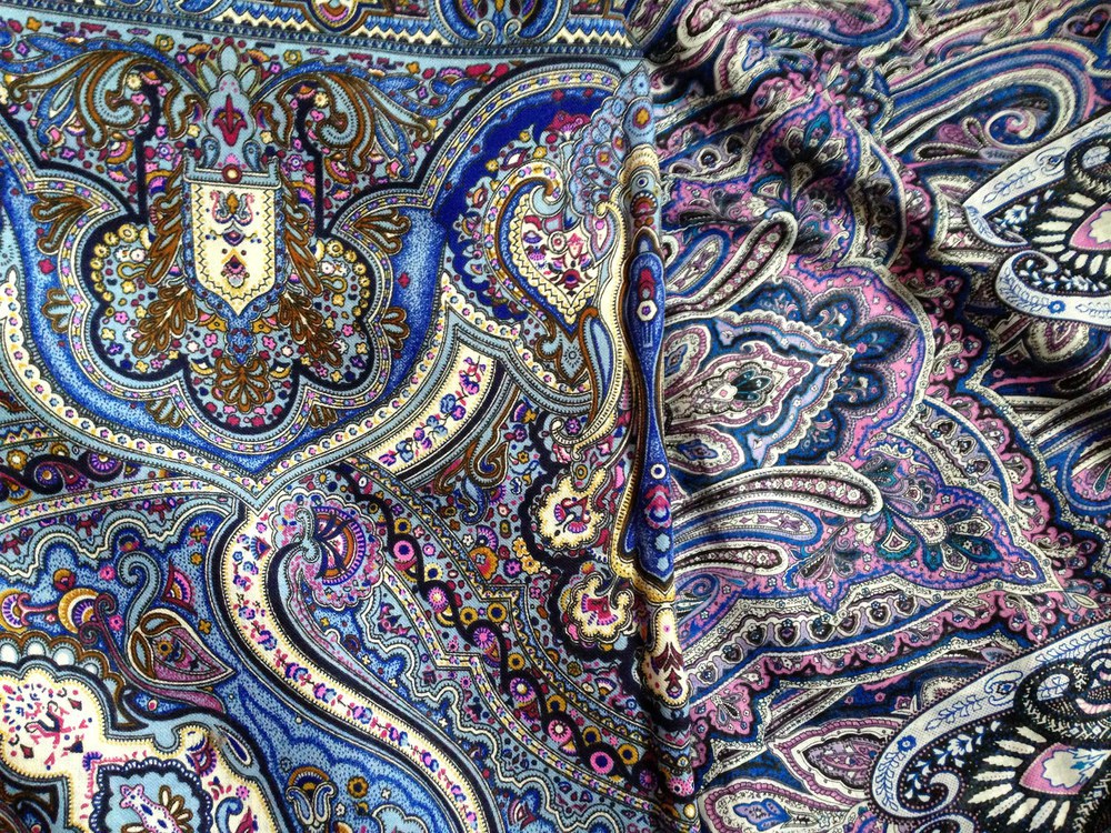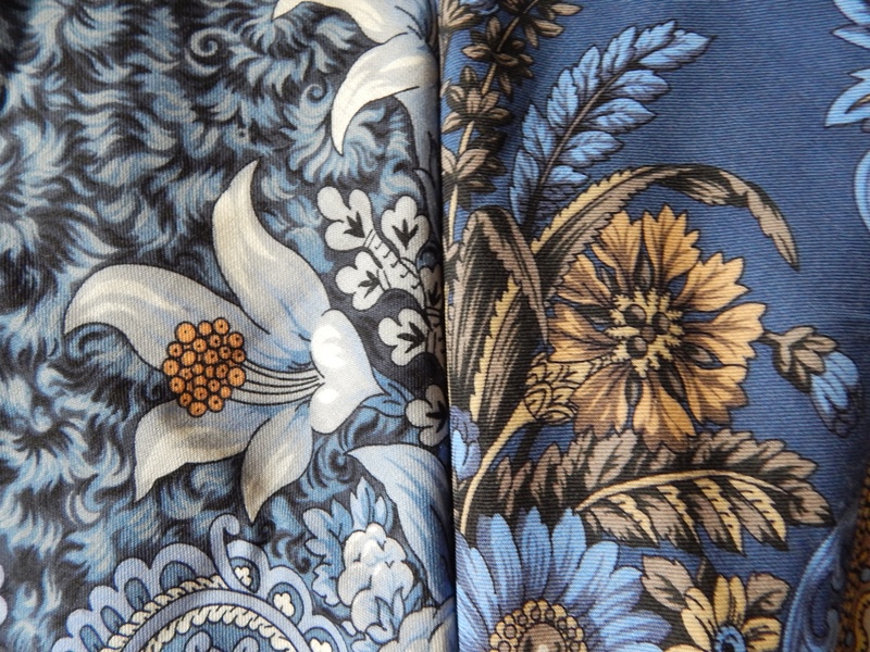 Всё - таки чувствуется, что у каждого времени свои колористические предпочтения. Это ощущается и по платкам, и по тканям.