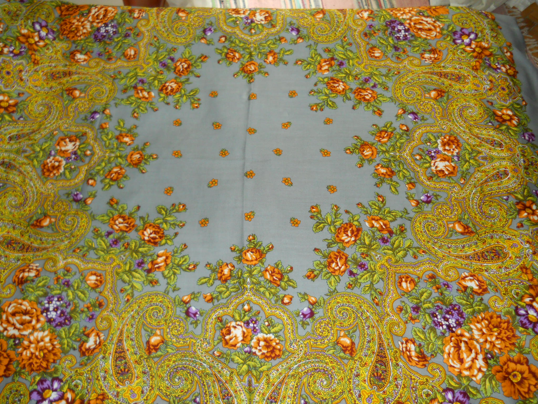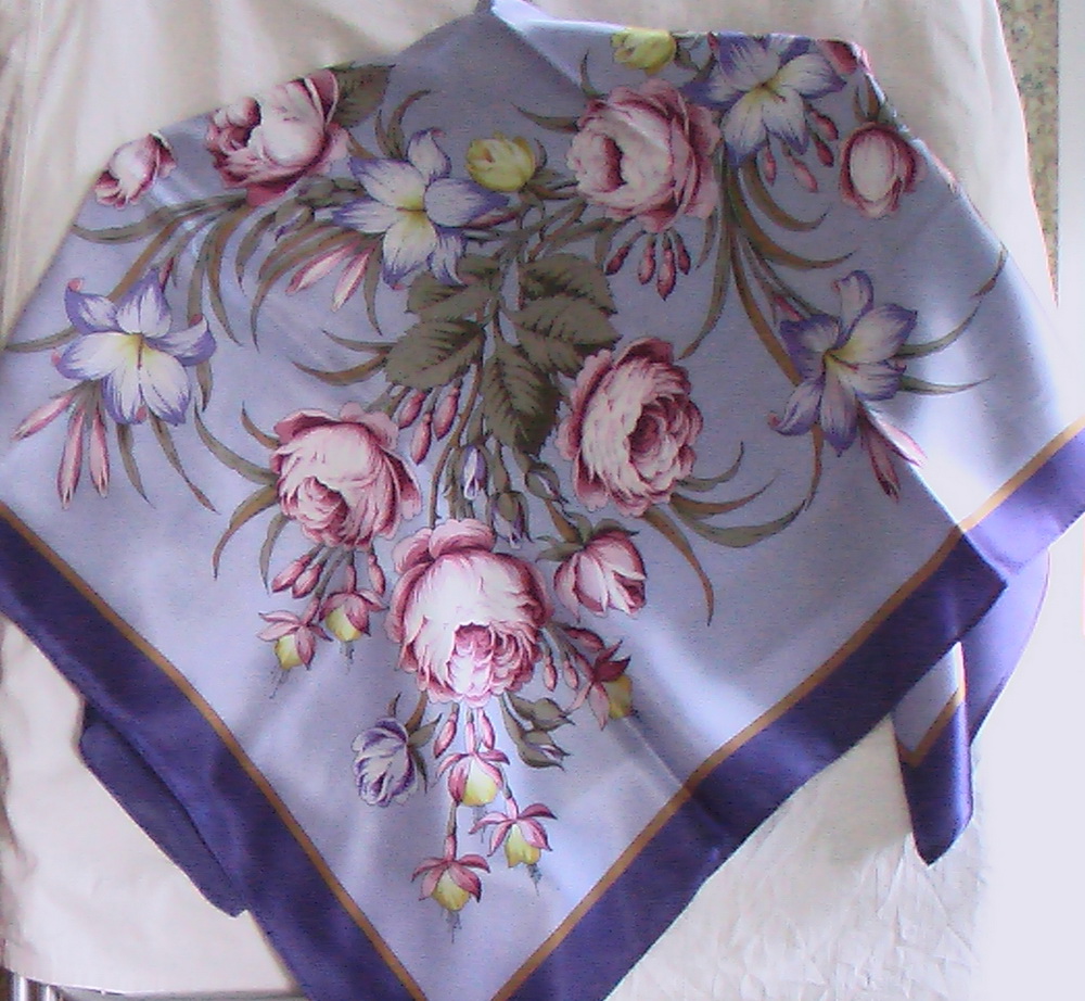 Из уходящих шелков... Живьём эти платки гораздо краше чем на фото, выглядят роскошно! На нашем форуме они пока не представлены. (Кликните, чтобы почитать оффтопик)...Фотографировала на балконе, шёлк фотографировать трудно, всё время сползает.