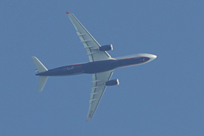 Вот такое громадное чудище, но очень красивое чудище, на очень низкой высоте в течение полутора часов нарезало над нами круги. Уходил в сторону Москвы, потом опять возвращался, и опять к Москве, и так много раз. По фото похоже на Боинг, точно, что огромный. Гул стоял как от низко летящего вертолета, птицы шарахались.