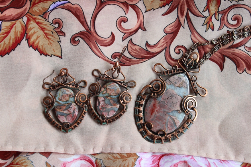 один из моих любимых комплектов. Также делался на заказ у прекрасной мастерицы Татьяны. Камни - мои любимые розовые яшмы