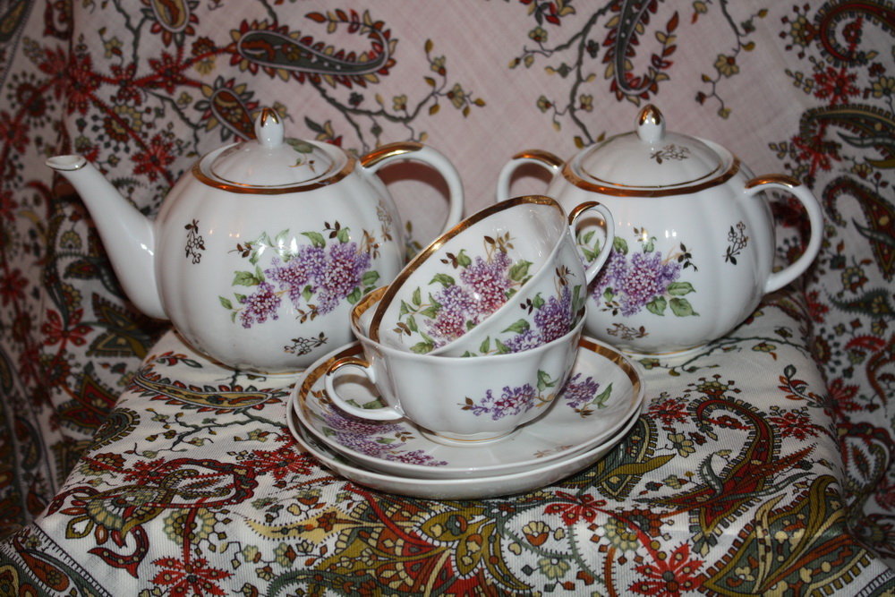 [quote="eleka"]А у нас дулевский сервиз с сиренью (помните такой, очень популярный в 50-е годы рисунок) от мамы. Наше с братом детство. Пьем из него чай, когда вся семья по праздникам собирается. Бережем. Чайник есть и сахарница. Только молочник не уберегли