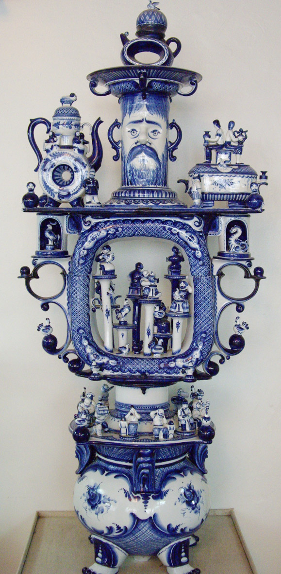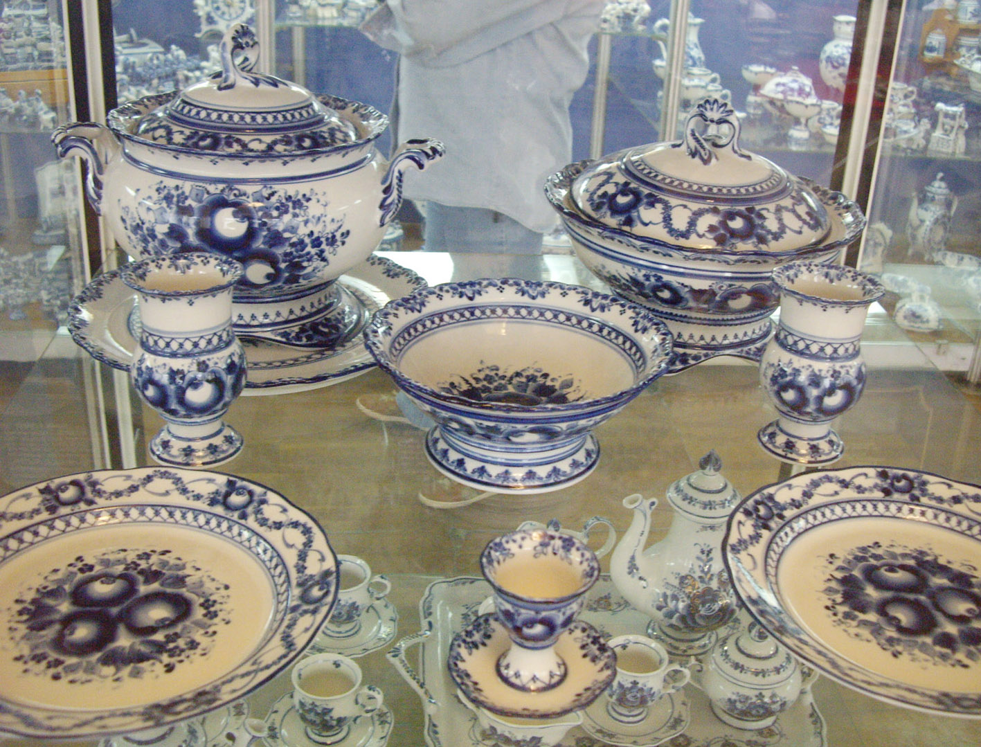 В музее голова идет кругом от бело-синего изобилия. Под рассказ экскурсовода начинаешь присматриваться и различать стили и манеру письма мастеров. Очень интересно в сравнении. Кто густо покрывает поверхность цветами, кто чередует пояски-медальоны с интервалами. У всех художников своя манера письма и скульптурная пластика, техники очень индивидуальны.