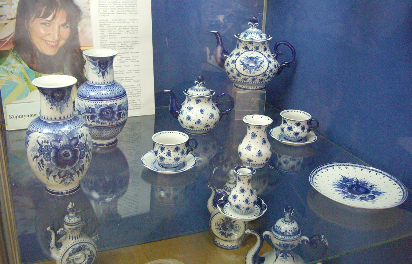 Каждый сервиз из каталога может быть един в трех лицах. Т.е, расписана на выбор заказчика - традиционным кобальтом по белому фону, цветная Гжель и “глухой кобальт” с надглазурной росписью.