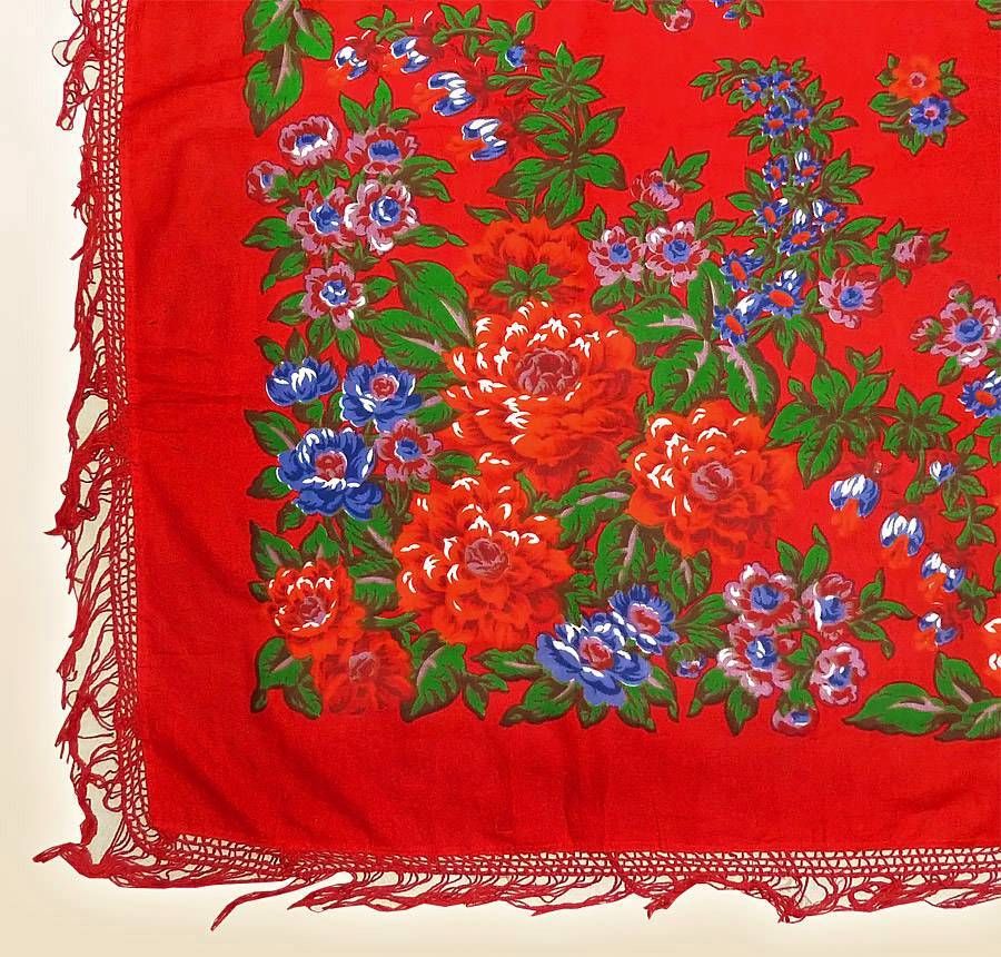Вот такая красота. И тоже в Узбекистане. Никогда не видела краснопольных хлопковых шалей. Даже как-то не верится, что это павловопосадская шаль, хотя рисунок очень "регуновский".