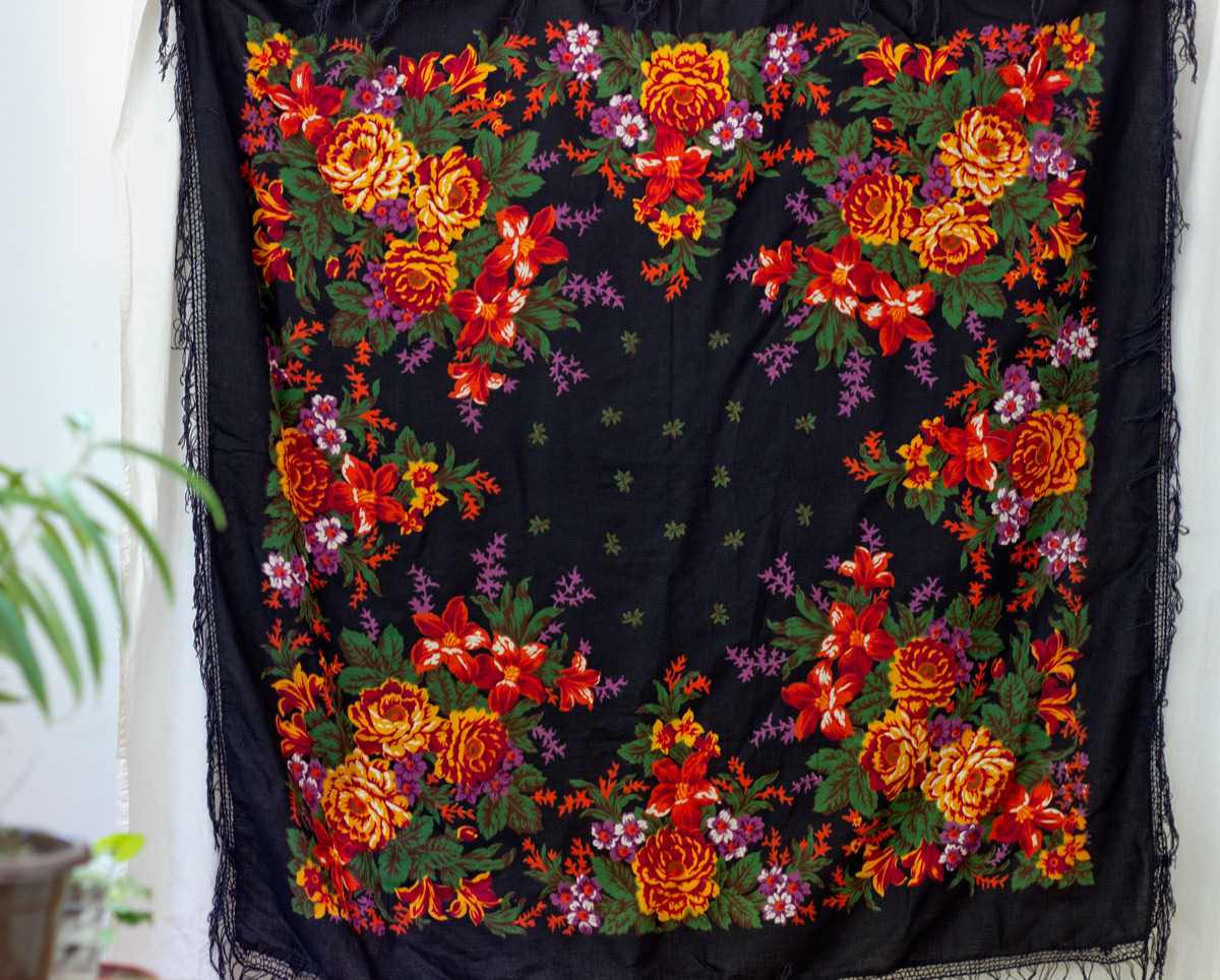 Шаль БУКЕТ С ГЕРАНЬЮ (фрагмент). Фотофильмпечать, 1976 год.