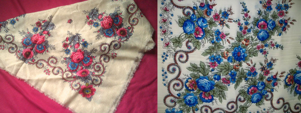 ЯНатальяЯ! ^% Платочек сначала очень заинтересовал, но, посмотрев внимательнее, осталась в недоумении. Не фейк ли это? (Вообще настораживает, когда продавец не показывает платок в развернутом виде). В первую очередь - странные кисти. Да и рисунок - достаточно компилятивный.. Но запросто могу и ошибиться, это только мое мнение.