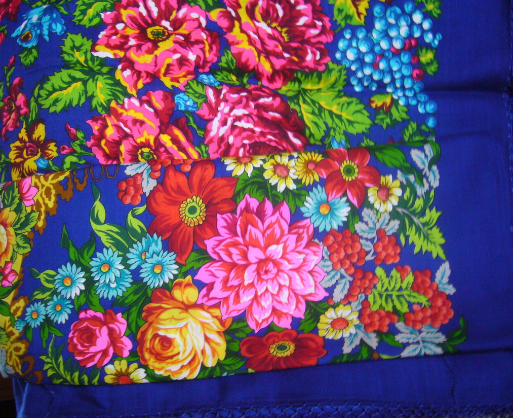 Хороша! :@ Оттенок фона чуть-чуть синее, чем у Рябины. Если бы Рябина пришла ко мне раньше, то я бы приобрела не Виноградную лозу, а Русские сезоны-14, которые отложены в магазине и ждут своего часа. :lol: А ведь еще будут Русские узоры-11!... Шалечка хорошая, но цветы для меня немного крупноваты. Пока не знаю, как буду носить. Но обладать таким сокровищем мне нравится! ;)