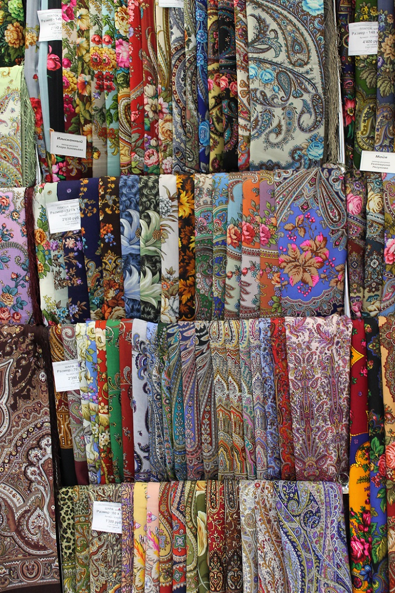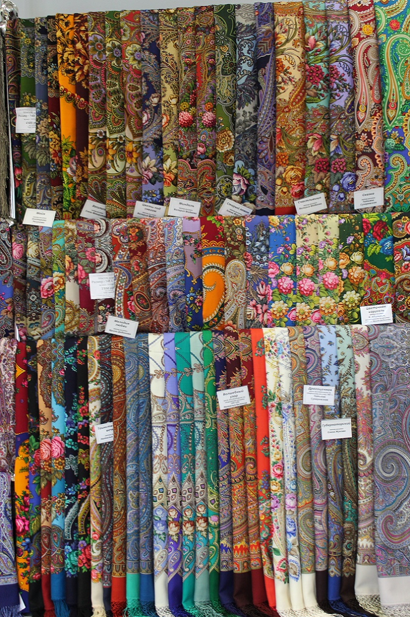 Обновлю тему. Ассортимент на сегодняшний день, правда Казачку-17 я вроде бы не увидела и Малиновку-2 не вывешена, кажется. И стойку с Отрадами и др. белыми платками не сфоткала.