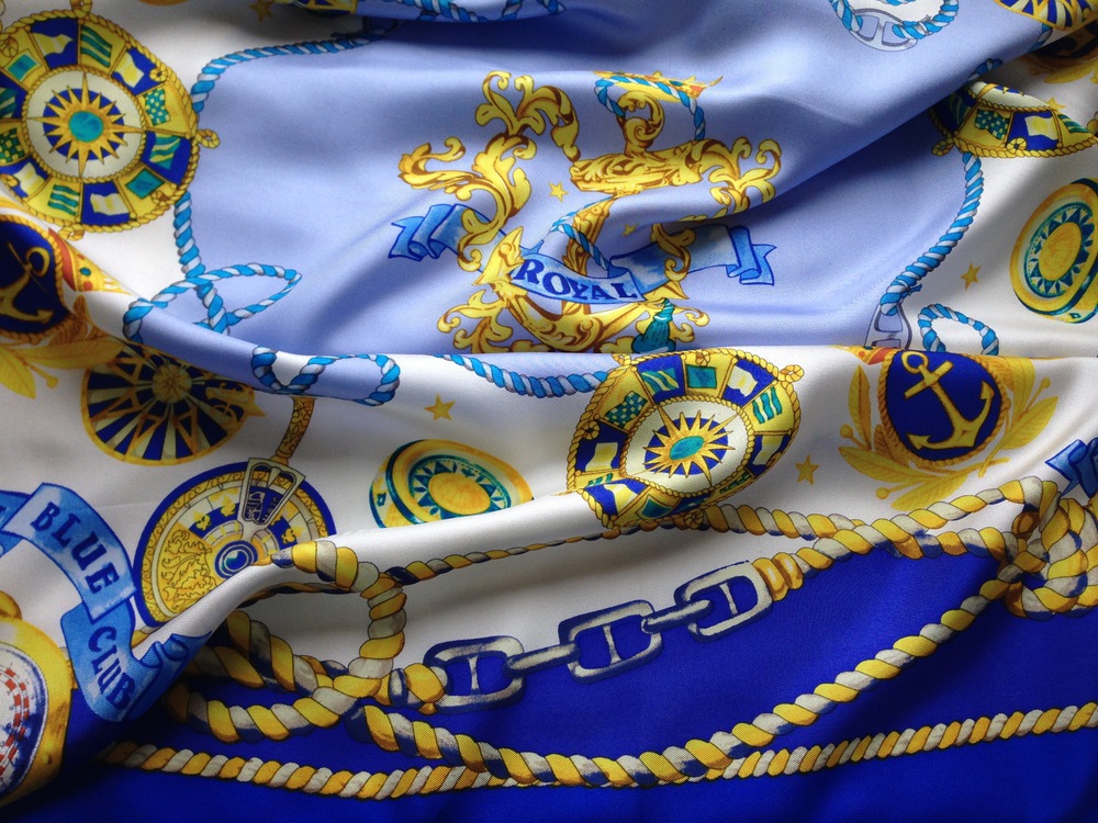 У меня есть и совершенно новый - из последней коллекции (итальянский).Милада писал(а): Девушки и дамы, покажите, пожалуйста, свои "морские" платочки, ведь они выпускаются уже много лет, значит есть у кого - то в закромах