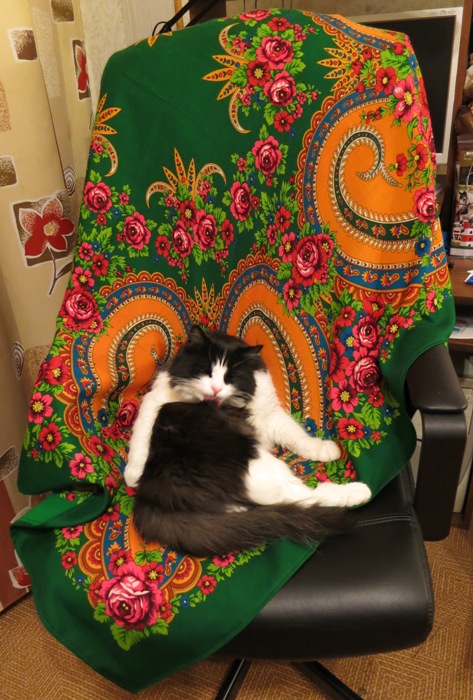 Вернусь домой и буду с фотоаппаратом примерять все свои синие платки-шали - может быть действительно, что-то стоит заменить Майей.