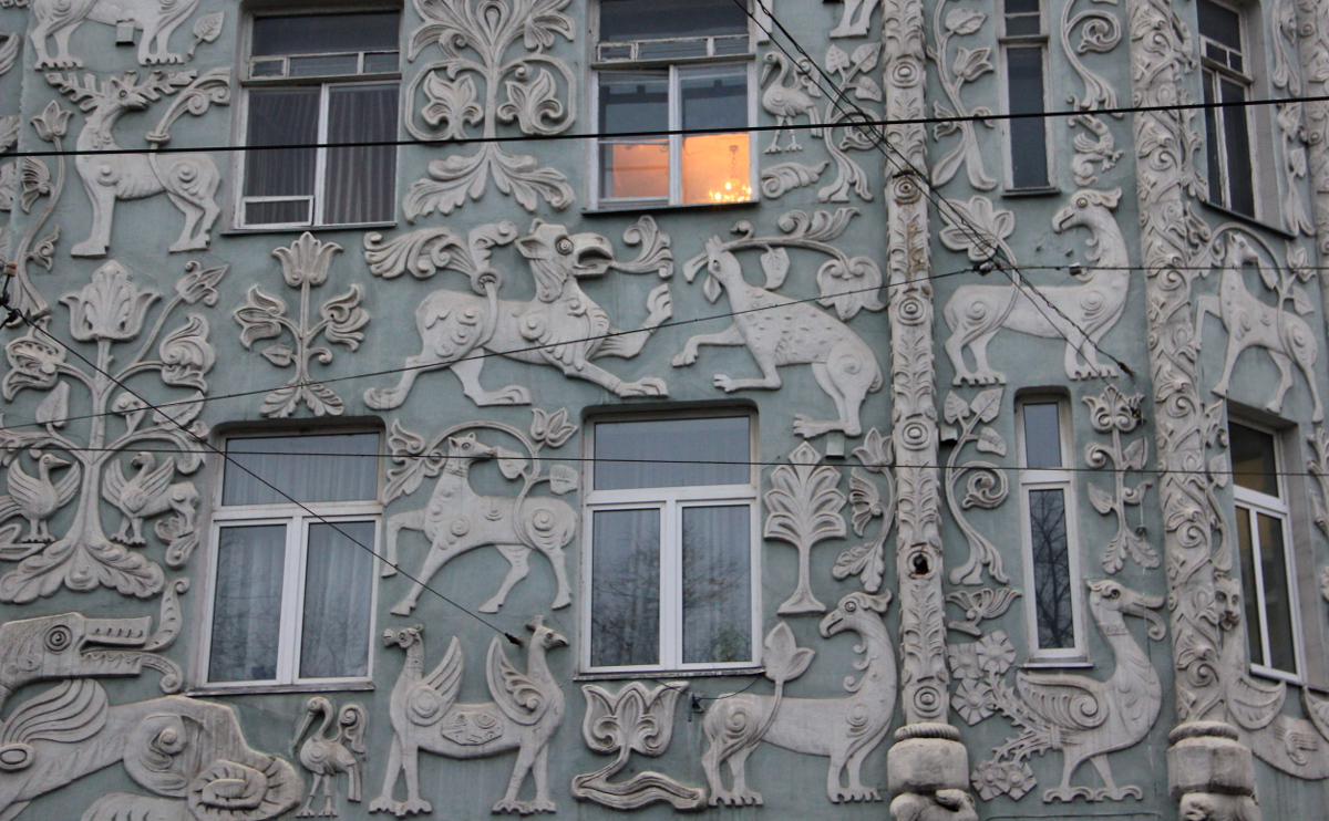 Доходный дом церкви Троицы на Грязех (1908—1909 г.г.) — памятник позднего «национального» модерна. Дом по проекту архитектора Л.Л. Кравецкого и П.К. Микини украшен сказочными зверями работы С.И.Вашкова. Первоначально дом был четырёхэтажным, а в послевоенные годы — надстроен до нынешних 7 этажей. Звери, большей частью, сохранились.