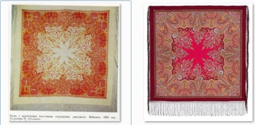 Сравнение шали конца XIX - начала XX века (справа) с современной шалью 1189-7_Восточная птица, восстановленной по старинному рисунку