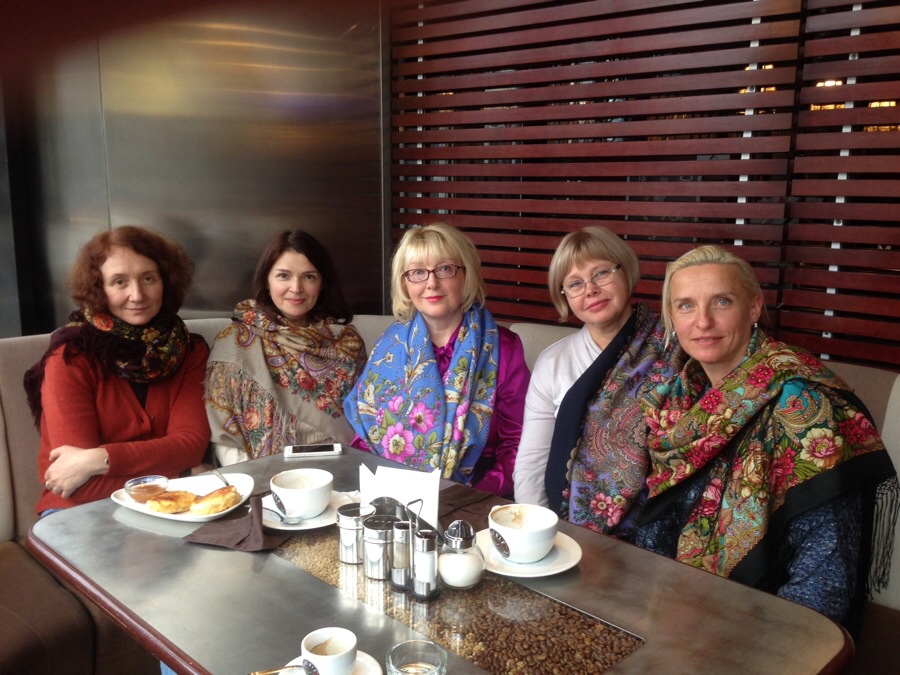 Как интересно в жизне случается. За ранее не планированно в Ригу приехали наши девушки с форума и я была рада их встретить и познакомится. Это были чудеснейшие дамы с Москвы - давние специалисты и знатоки платков, и гостья, которая тоже давно на форуме с подругой ( котороя тоже любит платки) из Пскова. Нас обьединяющая любовь к ППП конечно помогло нам встретися и познакомится. Думаю не только мне но и остальным девушкам эта была интересная встреча.