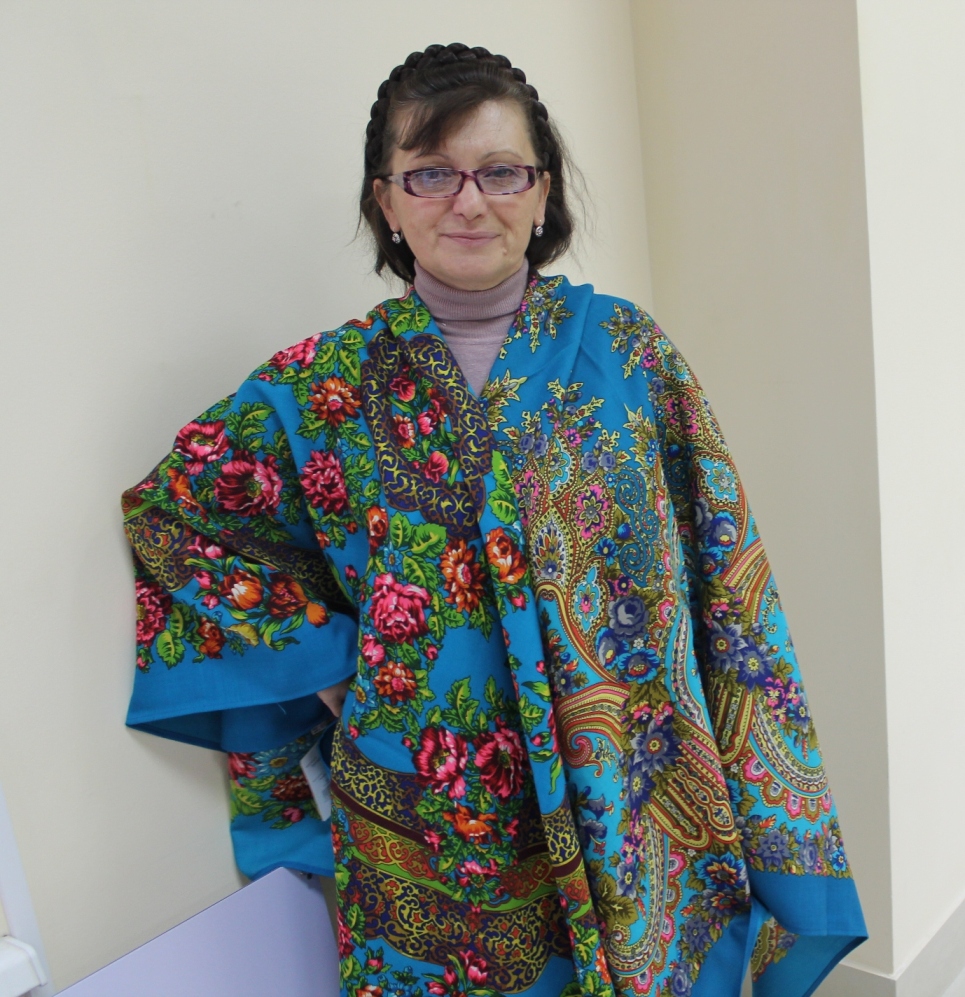 Татьяна ярких красок не боится. и правильно делает.Главное настрой, и любой платок покорится.