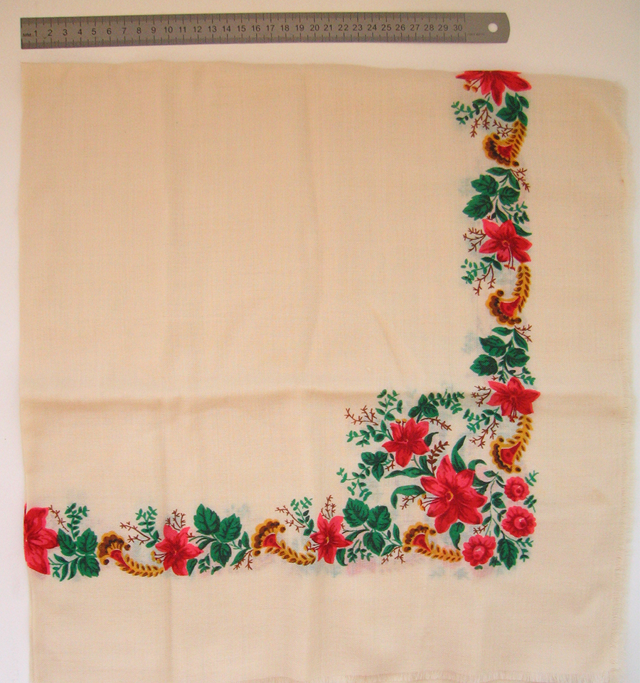 Платок с этикеткой Киевской платочной фабрики.