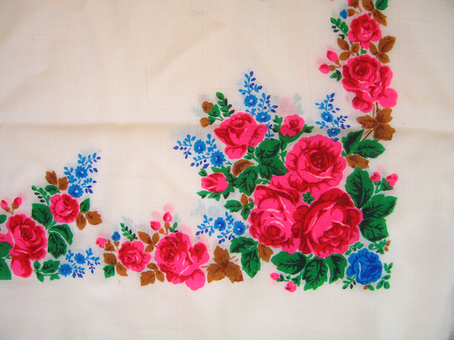 Платок с этикеткой Киевской платочной фабрики.