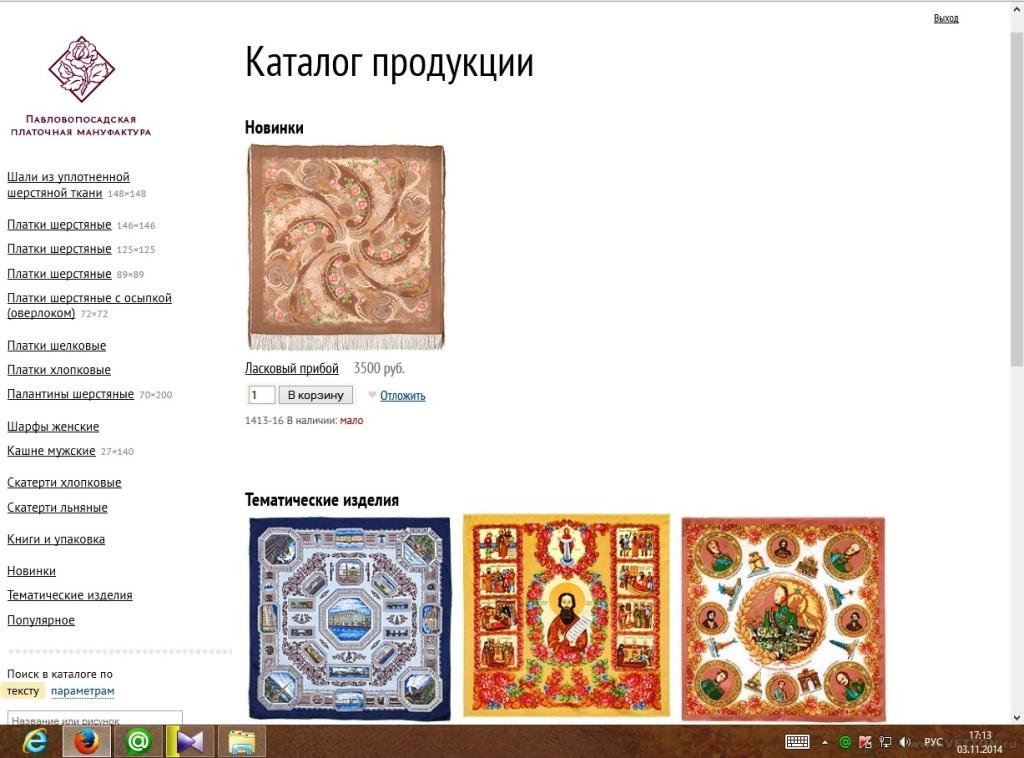 На сайте небольшие улучшения в каталоге. Теперь, если фотография платка допускает увеличенный просмотр при наведении на него курсора, в правом верхнем углу появляется изображение лупы. А если кликнуть на этом изображении лупы, увеличенное изображение откроется в отдельном окне.