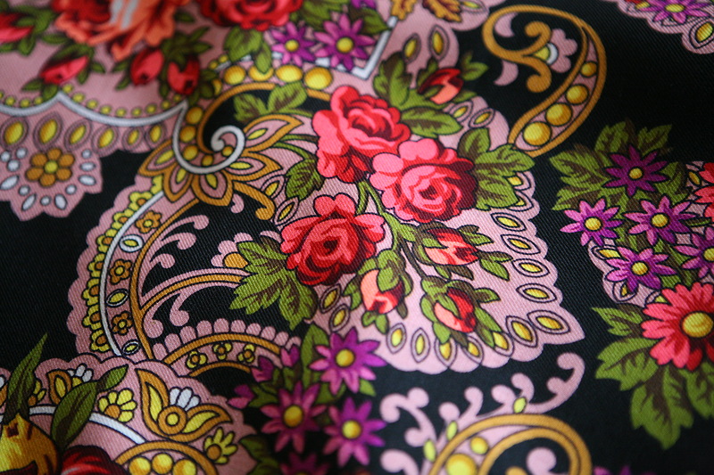 И вообще колористическая задумка этих платков симпатична - сочетание разных оттенков примерно одного цвета (в розах, элементах огурцов).