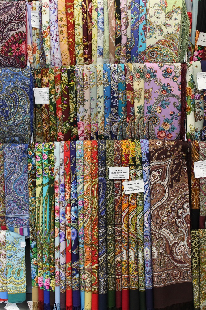 Обновлю тему. Ассортимент на сегодняшний день, правда Казачку-17 я вроде бы не увидела и Малиновку-2 не вывешена, кажется. И стойку с Отрадами и др. белыми платками не сфоткала.