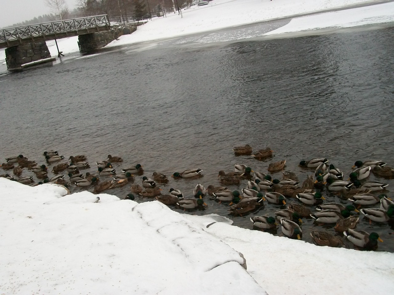 Утки так и зимуют, на не замёрзших участках рек и водоёмов, люди их подкармливают. У нас в Питере тоже есть места, где они перезимовывают, улетать не хотят. И это уже давненько, видимо, неустойчивые и часто тёплые зимы тому были причиной.