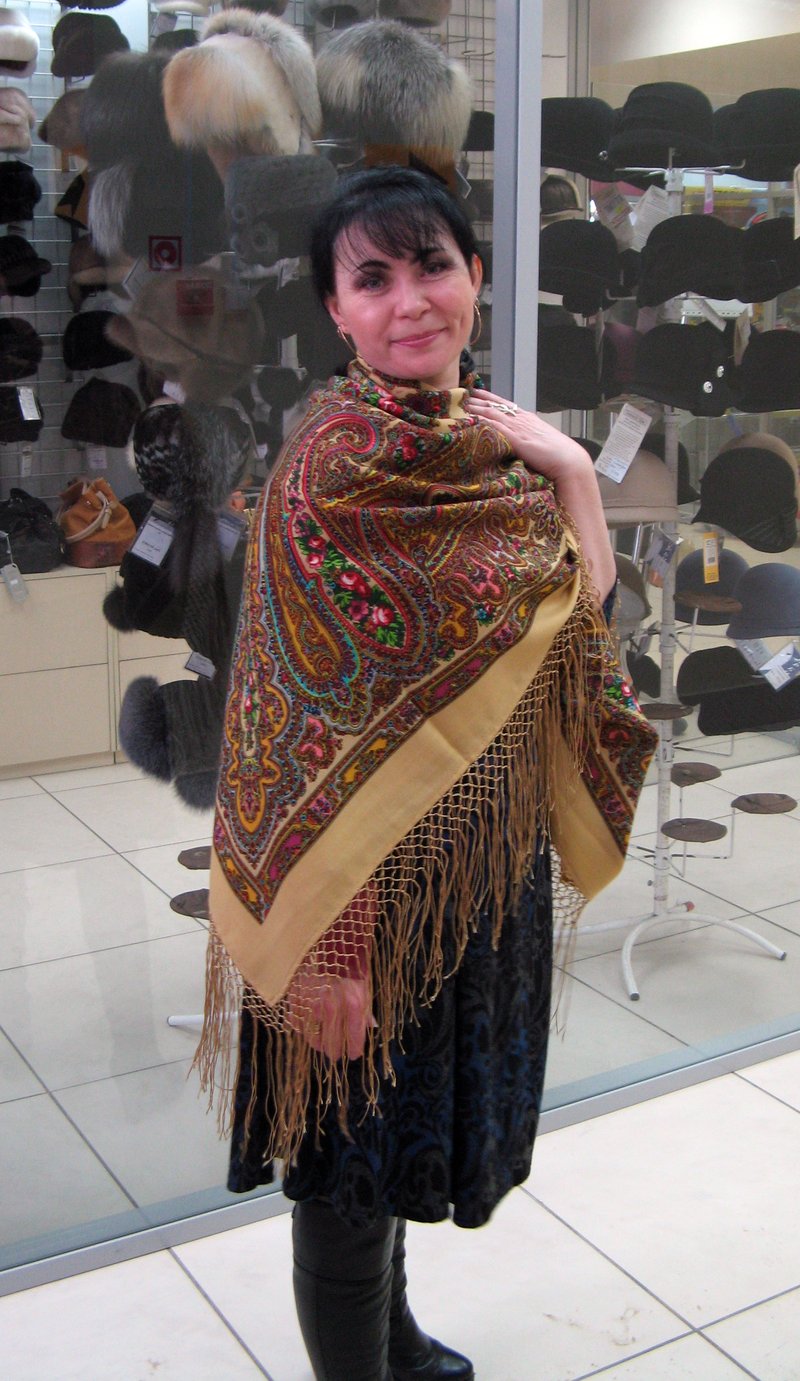 Алена на встречу принесла кроме белопольного ,очень красивого платка и шаль своей мамы.Со слов мамы-шаль японская..Думаю,Алена еще выложит фото платка на "опознание".Ну и у меня на фотоаппарате оказались два кадрика...Печать отличная,цвета яркие..