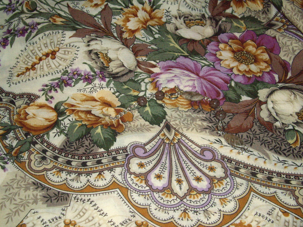 Mme N и форумчане, Вы знаете, я вчера, конечно, поторопилась, так хотелось фотографировать. При электрическом освещении этот платок- Таинство цветов- слегка "уходит" в бежеватые тона. На самом деле, как мне кажется, он что-то среднее между тем, что представлено в каталоге и тем, что показывала Фрейя, а вот описание у Фрейи замечательное! Правда, красные оттенки я бы назвала "кирпичными" или "терракотовыми", как Вы, Mme N, и определили.Mme N писал(а):...его еще раньше выставляла и описывала как жемчужно-серый с розовыми (или бежевыми?) и красными цветами Фрейя. В каталоге он выглядит отчетливо голубым, хотя описывается как серый...