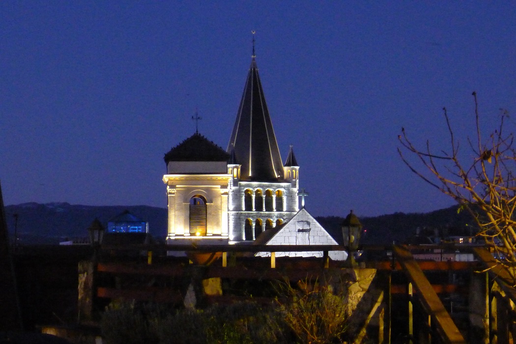 Отсюда виден другой, барочный фасад уже знакомой церкви Св. Франциска Сальского и сияющий подсветкой мост Перрье.