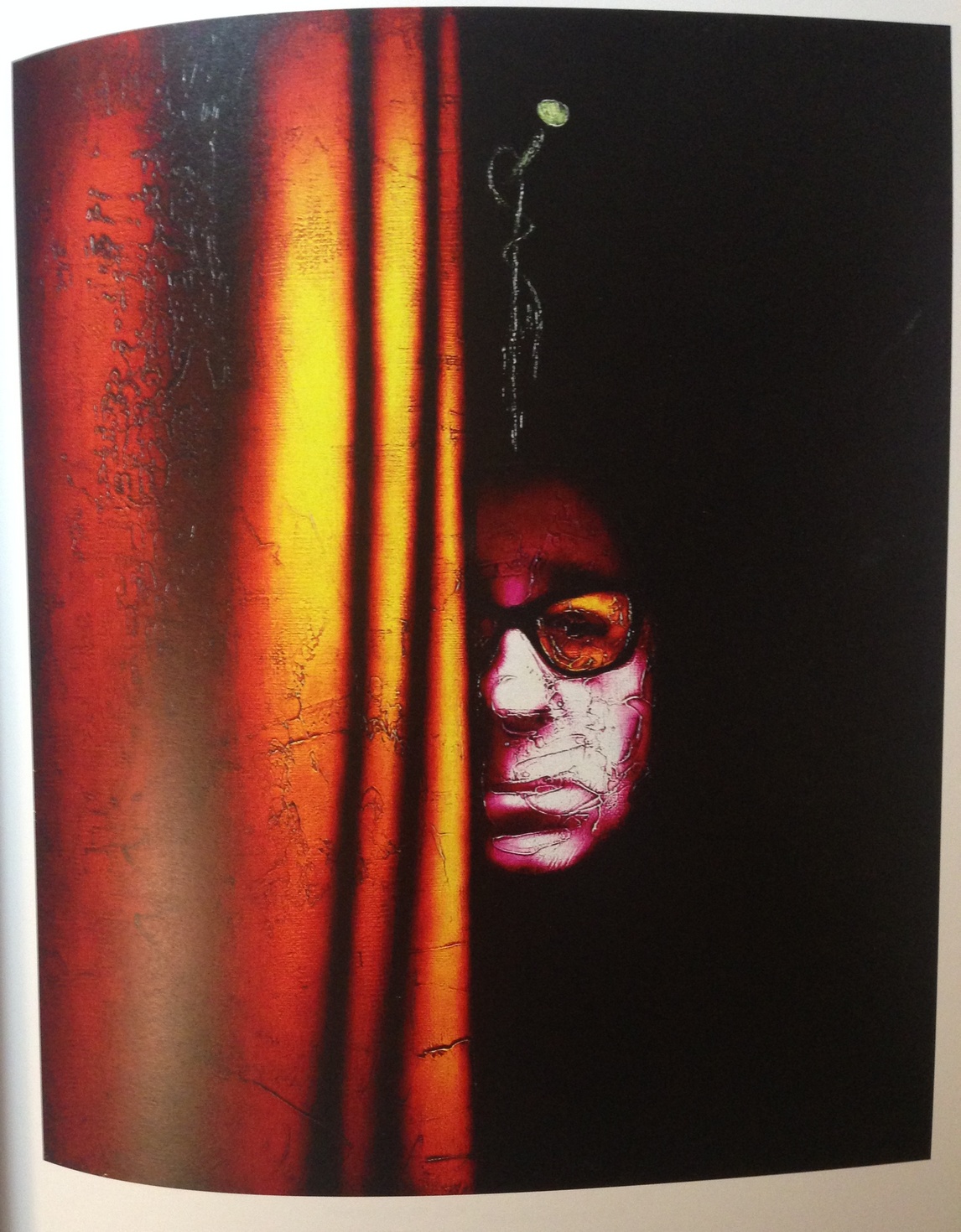 В картине интерьер и предметы сопоставляются с пространством "зазеркалья", с одной стороны, и с реальной средой, в которую помещён стоящий перед картиной зритель, - с другой.