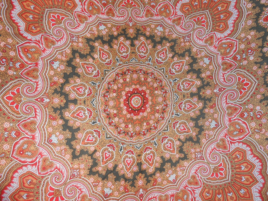 И еще один платок, куплен в секонд-хэнде за копейки. Ниточку из осыпки сожгла, пахнет рогом или животинкой, не помню, но мама сказала так пахнет натур. шерсть. Платок размером 125х125 см, край осыпка, на фото выглядит бледней, чем в жизни.(Кликните, чтобы почитать, что спрятано под катом)... Этот я тоже в базе не увидела.