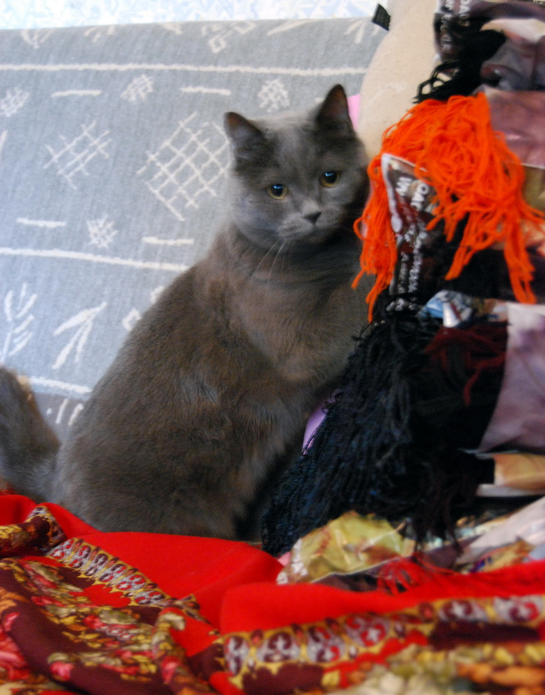 Сегодня занырнула в свои закрома, для поиска красной "Амалии"(хотела сделать фотосессию для темы про красный цвет), платок оказался на самом дне. Пока я занималась фотографированием, мой котик успел тщательно обследовать содержимое закромов