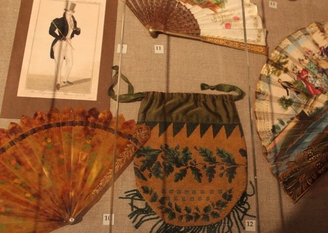 Один из множества экспонатов на выставке "Мода Пушкинской эпохи" - ридикюль с дубовыми листьями. 19 век. Реставрация в 2013-ом году.