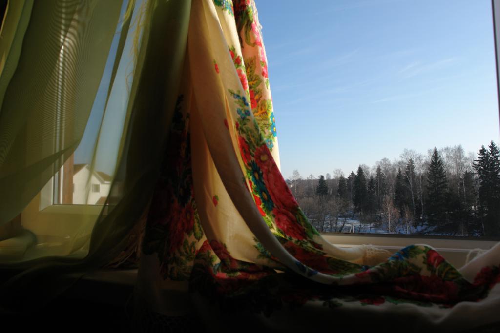 eleka Красивый вид из окна, а с платком - особо радостный и праздничный! Как-то высоко Вы на даче сидите, дом на возвышении, или четыре этажа?