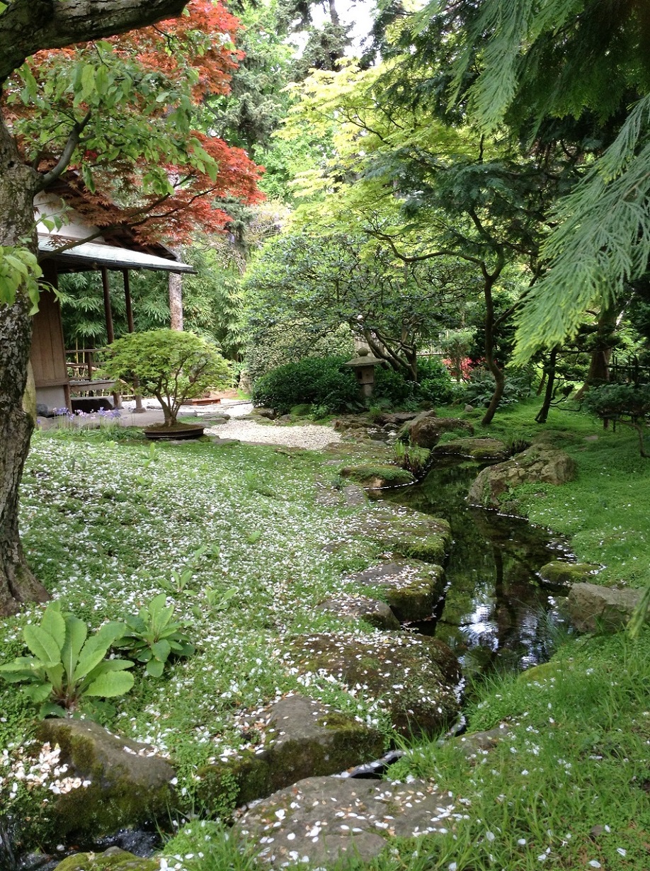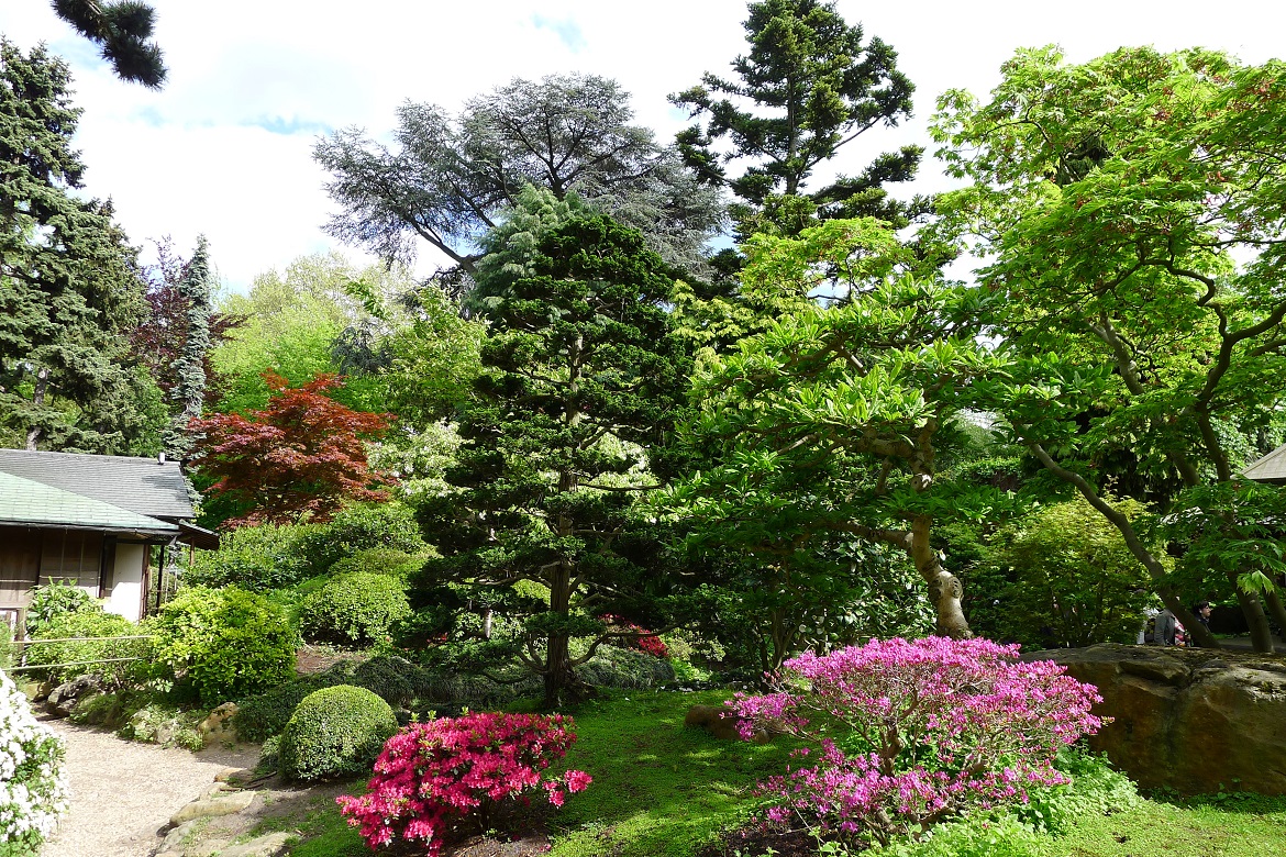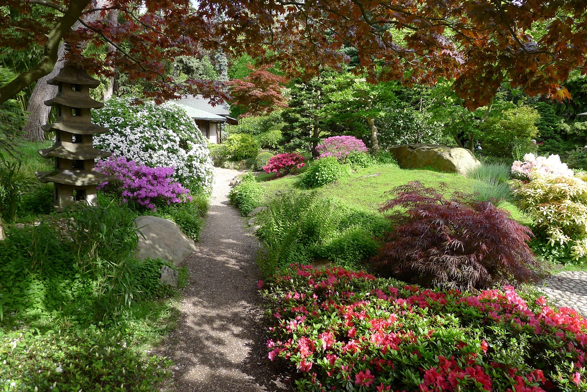 То там, то здесь из-за деревьев и кустов выглядывают каменные садовые фонари. Несколько таких фонарей были подарены Кану в первый визит в эту страну ее императором за содействие продвижению японских займов на финансовые рынки Европы.