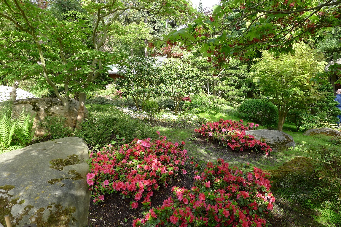 Японский сад – наиболее впечатляющая часть композиции. Его яркие краски видны отовсюду, просматриваются из других частей сада.