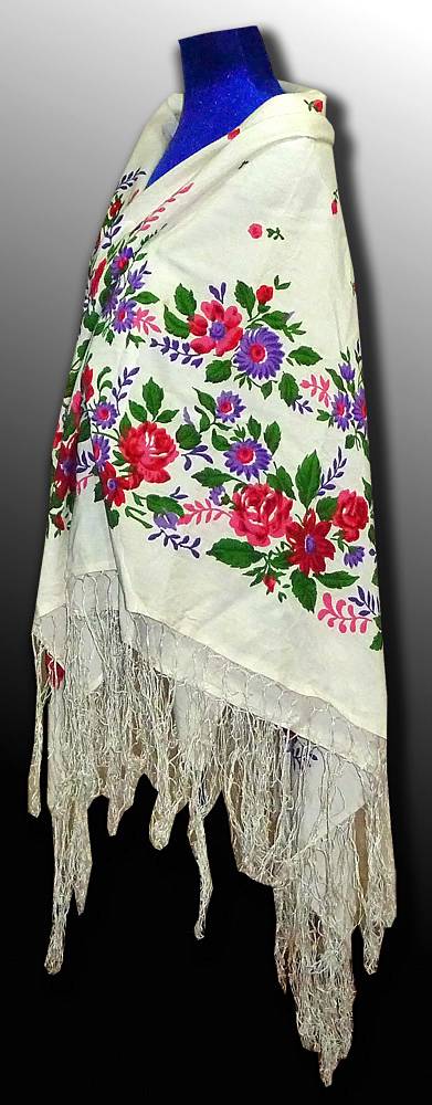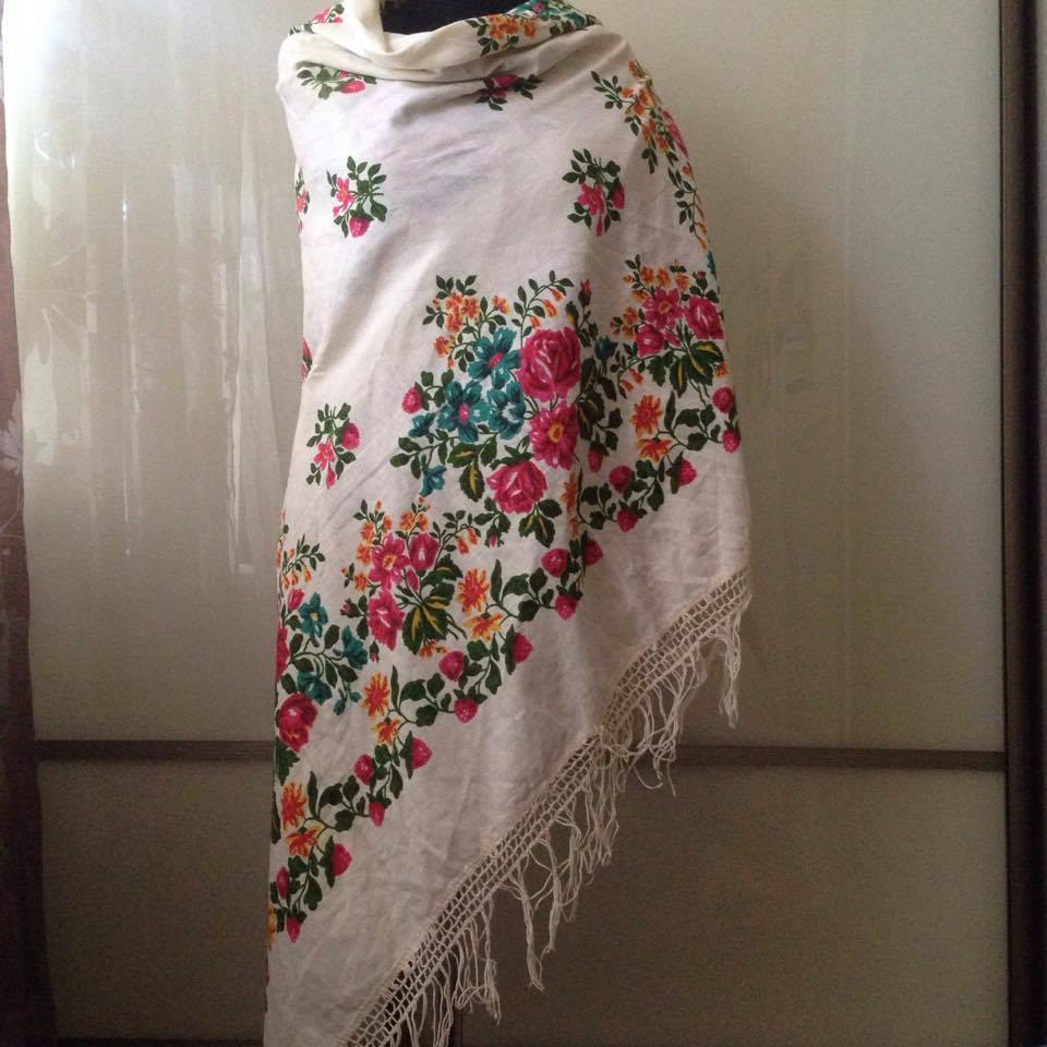 Всем привет, давно не виделись )) Вот такая интересная находка у меня сегодня. Самое интересное в ней, пожалуй - этикетка, на которой сказано, что это полушелковый платок! Набойка похожа на ручную.