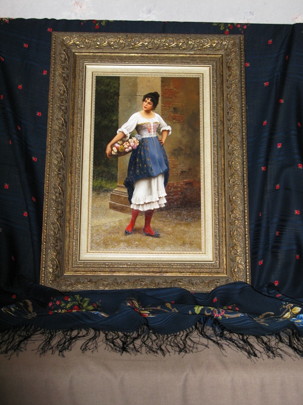 Дорогая Муза, прекрасно поставленный снимок, второй, который с учетом критики домашних (ничего не бликует). Удивительно перекликаются краски на картине с красками на полотне! Даже чулочки на цветочнице совпадают с цветочками на платке по цвету. Весенний цветок - чудесный!