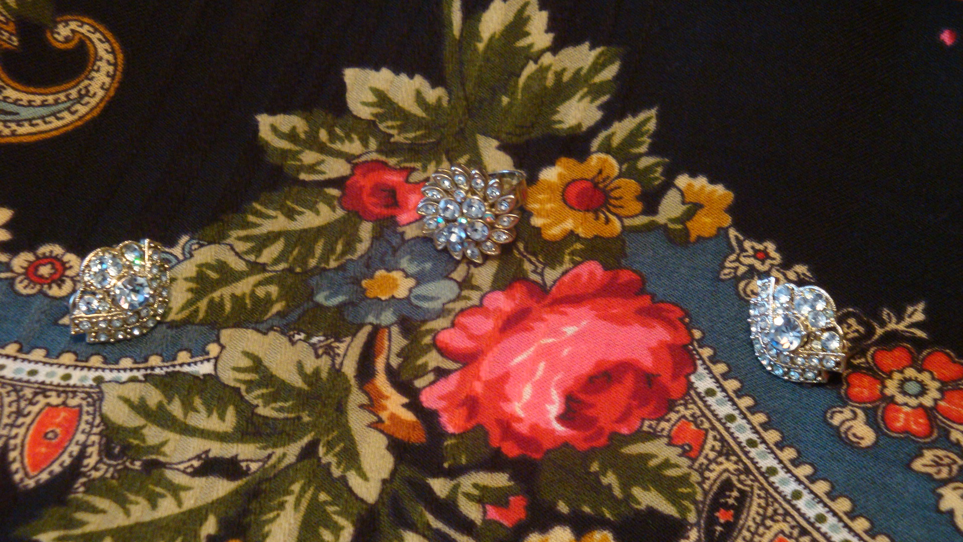 Но "Шолпан" -- это что-то особенное. Во-первых, нисколько она не старит. Шаль нарядно выглядит (чего не скажешь, глядя просто на её рисунок). Она очень современна, даже не могу сказать, откуда это ощущение; но просятся к "Шолпан" черные узкие брюки и каблуки. И светлые украшения: белый жемчуг или финифть с белой эмалью.