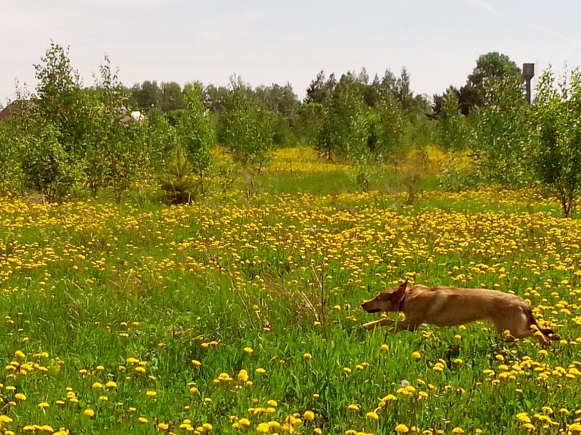 АЛЛА ОК – мне то же очень понравилась последняя фотка! Одуванчиковое поле и летящая по нему собака! Красота. Хорошо, что у нее есть возможность влезать во все лужи и речки. Для собаки, которая любит плавать - это большая радость.